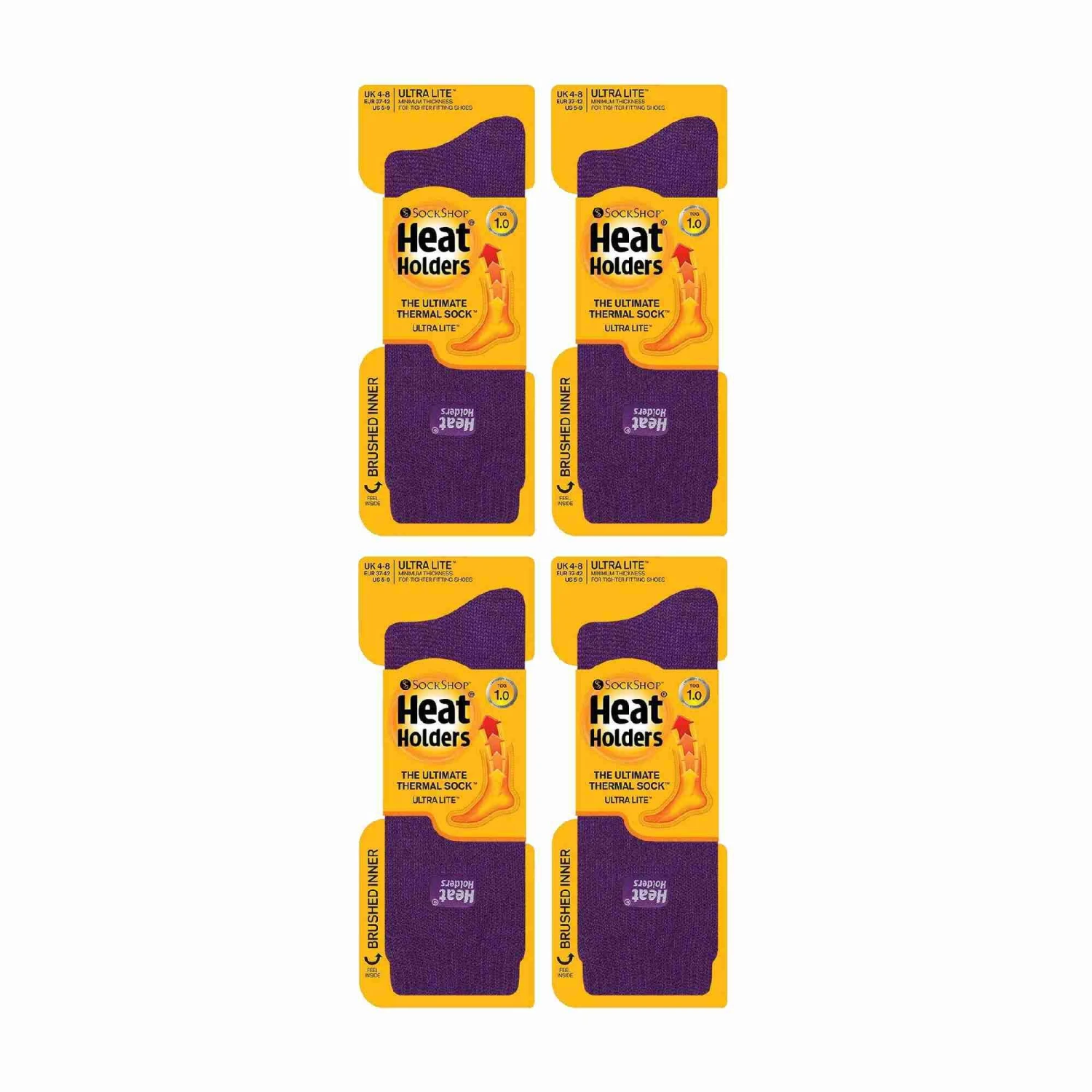 Keep feet warm on the coldest of days and pull on this pair of Heat Holders Ultra Lite Thermal Socks. Now in a 4 pack! Heat Holders Ultra Lite is like the Lite version but even less chunky. They are perfect for tighter fitting shoes, meaning they make great dress socks in the winter months, fitting in any sort of shoe and providing Heat Holders known warmth.