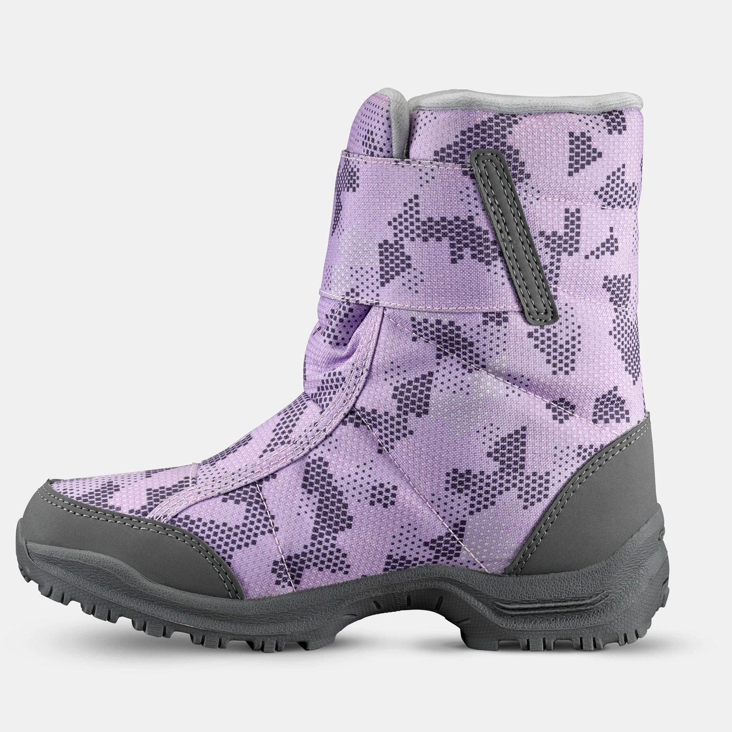We created these boots for children who hike occasionally. It is ideal on packed snow, for exploring snowy trails.These warm boots are easy to put on thanks to the wide opening and rip-tab adjustments. They provide more support, better protection from the cold and prevent snow from getting in